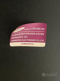 lettore DVD con 1 cassa centrale, 2 casse frontali, 2 casse posteriori e subwoofer.