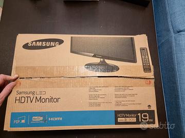 Vendo TV/monitor Samsung T19C300EW da 19". Il prodotto è nuovo, mai utilizzato. Aperta solo la scatola per verifica, completo di accessori originali. Ancora presenti le pellicole originali. Schermo da 19" HD Ready (1366x768), retroilluminazione LED. Doppio utilizzo TV + monitor PC. Ingressi: HDMI, VGA, USB. Sintonizzatore digitale terrestre DVB-T integrato. Speaker integrati. Slot CI per CAM. Ideale per camera, cucina o come monitor secondario. Perfettamente funzionante, nessun segno di usura. Prezzo trattabile