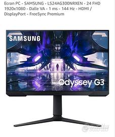 Samsung Monitor Gaming Odyssey G3 24 pollici 144hz FreeSync Premium Modelo LS24AG30 Ottimo per Gaming competitivo Completo di Scatola e manuali.