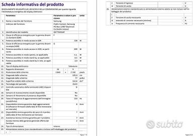 Vendo Samsung s95d 77” top di gamma Samsung acquistato come privato a giugno 2025 quindi con due anni di garanzia. Vendo completo di imballaggio e documentazione originale accompagnato da fattura di acquisto. Tv che si acquista tra i 3500 ed i 4000 euro.