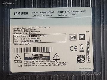 causa rottura schermo vendo i vari componenti del televisore samsung QE55Q6FNATXZT 1) scheda alimentazione (foto nr. 1) CN07 BN4400878C Euro 70 2) altoparlanti Euro 35 3) telecomando originale perfettamente funzionante ma con tasti scoloriti 15Euro 4) flats, sensori wifi e infrarossi pulsante accensione 20E 5) copercho posteriore Euro 40 6) intero televisore con schermo rotto Euro 100