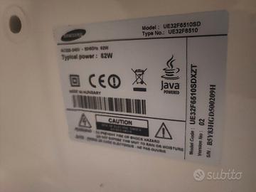 Vendo per passaggio a modello superiore Samsung Smart TV da 32 pollici, modello UE32F6510. Il televisore fa parte della serie "White Edition", caratterizzato da un design molto elegante con cornice bianca sottile e base a X cromata, perfetto per camere da letto, cucine o ambienti moderni. Caratteristiche principali: Risoluzione: Full HD 1080p (immagini molto nitide). Design: Ultra Slim, colore bianco ghiaccio. Connettività: 4 porte HDMI, 3 porte USB, Wi-Fi integrato. Extra: Supporto tecnologia 3D e funzioni Smart TV. Condizioni: Il televisore è perfettamente funzionante e tenuto con estrema cura. Nessun graffio sul pannello. Telecomando originale incluso