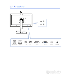 - Ritiro a mano Pero (MI) oppure spedizione sicura con corriere anche in assicurata (in caso di spedizione si richiede pagamento anticipato, non spediamo in contrassegno ) - oggetto fatturabile - pagamenti Bitcoin Lightning Network accettati - whatsapp https://wa.me/Mostra numero Samsung SyncMaster VC240 23.6" Vga HDMI 2x lan HD lcd monitor videoconferenze Samsung SyncMaster VC240 (VC240, VP24WS, LF24VPNLB/EN)) Video Conferencing Monitor CON TELECOMANDO Caratteristiche generali Tipo: Monitor LCD Widescreen; Diagonale: 23.6"; Risoluzione: 1920x1080 (16:09); Tipo LCD: TFT TN; Schermo Luminosità: 300 cd/m2; Contrasto: 1000:1; Tempo di risposta: 5 ms; Campo visivo: Orizzontale: 170°; verticale: 160°; Il numero massimo di colori: 16.7 milioni; Collegamento Ingressi: DVI-D, VGA (D-Sub); Uscite: cuffie; Interfacce: Ethernet; Funzioni Multimedia: altoparlanti stereo (2x3 W); Unità di alimentazione: built-in; Consumo: In funzione: 85 W, Standby: 3W; Inoltre webcam integrata: Sì; Standard: Plug & Play: DDC 2B; Regolazione altezza: Sì; Dimensioni, peso: 569x440x226 mm, 8.80 kg; CAVI INCLUSI ALIMENTAZIONE, VGA, link ufficiale https://www.samsung.com/uk/support/model/LF24VPNLBSEN/ manuale https://www.dekom.com/fileadmin/Vidowawi/SCOPIA-VC240-UserGuide_05_L01.pdf