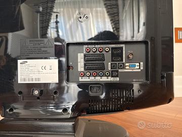 🔌 Porte video e audio principali (retro) •HDMI IN (x2) •DVI IN (HDMI2) (ingresso combinato per DVI/HDMI) •SCART (x2) (AV e RGB) •Component IN (Y, Pb, Pr + audio L/R) •Composite AV IN (RCA: giallo video + rosso/bianco audio) •Audio OUT (RCA L/R) •Digital Audio OUT (ottico) 📡 Altre connessioni •ANT IN (antenna/coassiale) •PC IN (VGA) •Audio PC (jack 3.5 mm) •Porta SERVICE (per assistenza tecnica) 📺 Porte laterali •AV IN laterale: •S-Video •Composite video (giallo) •Audio L/R (bianco/rosso) •Slot CI (Common Interface) per moduli CAM