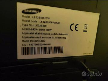 SAMSUNG TV LCD mod.LE32B530P7W con base rettangolare, cavo e telecomando.