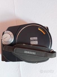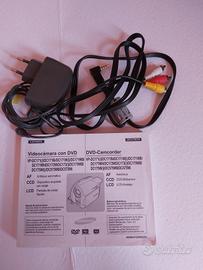Samsung DVD camera recorder modello VP-DC171W con caricabatteria e libretto di istruzioni, senza scatola originale e batteria da sostituire.