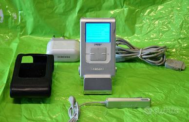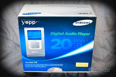 Player MP3 Samsung YEPP YH-920 GS con radio FM Stereo, HD interno da 20 Gb e registratore vocale. Completo di imballo originale, manuale utente, custodia in pelle, telecomando a filo, base di carica e adattatore a rete. Scocca in alluminio, display LCD retroilluminato blu. Qualità audio eccellente. Perfettamente funzionante. Prova e ritiro a Roma zona Colli Aniene.