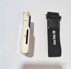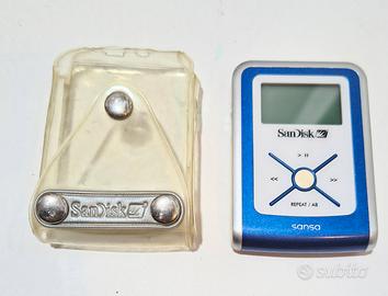 SanDisk, Lettore MP3 Sansa E130, un pezzo vintage per gli amanti della musica. - Include un cinturino da polso/braccio - Custodia protettiva trasparente originale sandisk - Scheda MultiMediaCard Canon 16M nuova - Cuffie con cavo bianco - Adattatore SanDisk