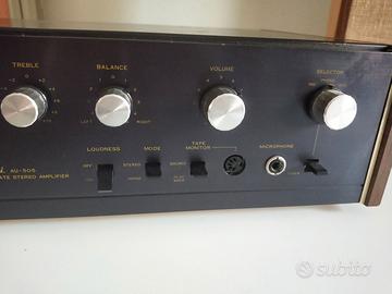 Il modello AU 505 è ben noto agli amanti del marchio per la sua qualità sonica. Parliamo di un 12 + 12 watt dei primi anni 70 che suona come un amplificatore decisamente piu’ potente. Nessun altro amplificatore integrato della sua classe può eguagliarlo per qualità tonale, versatilità, facilità d'uso ed economia. Invito a dare una occhiata alle recensioni presenti su HI ENGINE ove viene definito come e un eccellente amplificatore vintage. L’apparecchio in foto è perfettamente funzionante, il cabinet in metallo con fianchetti in legno presenta qualche segno del tempo.