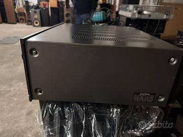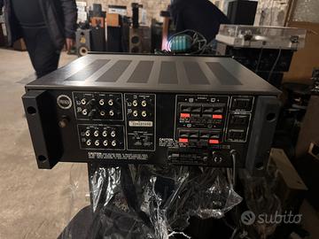 Metto in vendita questo splendido amplificatore integrato degli anni d'oro dell'alta fedeltà (prodotto tra la fine degli anni '70), un vero carro armato per costruzione e qualità sonora. • Estetica: In ottime condizioni generali, frontale e manopole in alluminio nero tenuti benissimo . • Funzionamento: Perfetto al 100%. Potenziometri e selettori fluidi e senza fruscii. Suono dinamico, caldo e dettagliato. • Costruzione Dual Mono: Due trasformatori separati e condensatori massicci per una separazione dei canali e una riserva di potenza incredibili. • Potenza: 65 Watt per canale su 8 ohm (ma sembrano molti di più grazie all'alta erogazione di corrente). • Ingressi: Phono (eccellente), Aux, Tuner e doppio loop per registratori (Tape 1 e 2). • Sezione pre e finale separabili (Pre-out / Main-in).