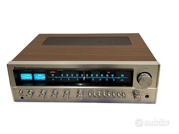 Sanyo DCX-8000K Ricevitore stereo AM/FM (1974-75) Gamma di sintonizzazione: FM, MW Potenza in uscita: 50 watt per canale in 8Ω (stereo) Risposta in frequenza: da 20 Hz a 20 kHz Sensibilità di ingresso: 2 mV (MM), 180 mV (DIN), 180 mV (linea) Uscita: 180 mV (linea), 35 mV (DIN) Impedenza di carico dell'altoparlante: 8Ω (minimo) Dimensioni: 435 x 145 x 350 mm Peso: 12kg Spedizione a carico dell’acquirente