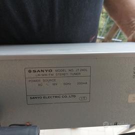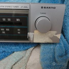 Sintonizzatore stereo vintage Sanyo JT-240L, in buone condizioni estetiche, presenta qualche segno di usura superficiale: etichette attaccate e graffi sotto. Non riesco a provare se funziona
