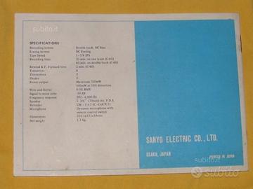 Sanyo M-1300 Cassette Recorder Manuale istruzioni, Originale Anni 70 Printed in Japan/