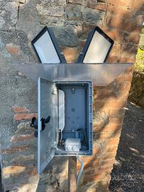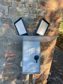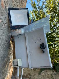 Dissuasore acustico Bird Sound per allontanare uccelli da orti, frutteti e coltivazioni. Funziona emettendo suoni di allarme e richiami di predatori. Alimentazione con trasformatore 220V incluso. Vendibile anche con quadro elettrico e 2 fari a led montati.