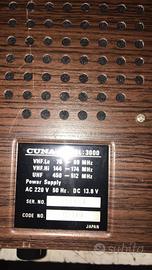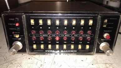 Vecchio scanner cuna model 3000 Made in japan, uhf e vhf, l’ apparato si accende e quando si mette lo squelch le luci si muovono scorrendo alla ricerca di un emittente. Fa fruscio e si sente che fa la ricerca, ma so che ha dei quarzi al suo interno, quindi non sono riuscito a captare nulla. Ha 2 antenne estraibili, e staffa supporto,credo per auto o altro. Ma privo di viti fissaggio. Completo cavo alimentazione a forma di otto anche se non in foto.credo sia degli anni 60-70 in buono stato