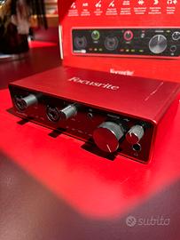 Vendo Scarlett Focusrite 4i4 di terza generazione per inutilizzo. Funziona, l’ho usata molto poichè ne avevo un’altra. Purtroppo ha dei graffi sul top, mentre le parti anteriore e posteriori sono perfette. Nessun componente danneggiato, funzionante.