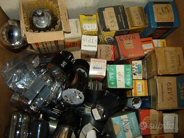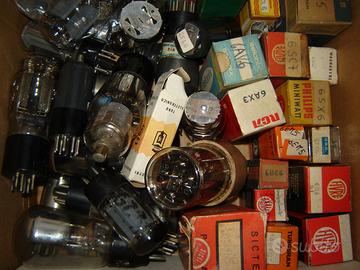 scatola con circa 50 valvole elettroniche per vecchie radio e tv alcune sono nuove molte sono usate non sono provate Spedizione ben protetta.