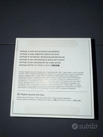 Vendo per inutilizzo scatola confezione originale di AirPods 4 con cancellazione attiva del rumore in ottimo stato. Attenzione, non vendo le cuffie AirPods ma solo la confezione.