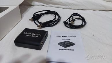 Vendesi scheda video di acquisizione, supporta i formati 4k 2k e 1080p con funzione Loop per poter giocare su tv o monitor in tempo reale e senza lag durante l'acquisizione, in quanto i dati video vengono inviati via USB, e avendo la porta HDMI in entrata e uscita il segnale viene sdoppiato per essere inviato sia ad un pc per l'acquisizione e sia per essere trasmetto al monitor e/o una tv in tempo reale , LAG 0 garantito appunto grazie alla funzione LOOP.