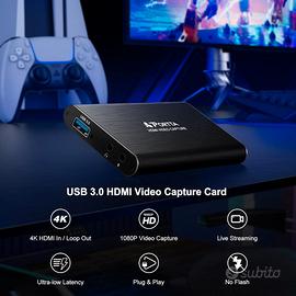 La scheda di acquisizione video HDMI PORTTA è un dispositivo plug-and-play ad alta compatibilità (Windows, macOS, Linux, PS4/PS5/Xbox) che supporta l'ingresso e l'uscita loop-out HDMI fino a 4K a 60 Hz (YUV 4:2:0), ideale per lo streaming e la registrazione di gameplay o contenuti live. L'acquisizione avviene in alta qualità a 1080p a 60 fps tramite interfaccia USB 3.0, garantendo una latenza ultra bassa. Il dispositivo estende la sua versatilità includendo porte audio dedicate da 3,5 mm per l'uscita cuffie e l'ingresso microfono (sebbene l'audio del microfono non sia inoltrato all'uscita HDMI o cuffie). Nonostante supporti il Pass-through 4K, non gestisce HDR o CEC. L'ampia compatibilità con software come OBS Studio non richiede l'installazione di driver. Il kit include la scheda, cavi USB 3.0 e HDMI, manuale e una garanzia di 2 anni con supporto tecnico a vita.