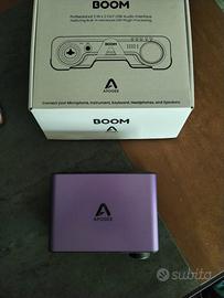 Come da annuncio, vendo ottima scheda audio Apogee Boom per inutilizzo. L'avevo acquistata come scheda audio di backup da portare in giro, ma poi le cose son cambiate e non ho più avuto questa necessità. Completa di scatola e cavi e in ottime condizioni estetiche e di funzionamento. NO PERMUTE, QUINDI NON PROVATECI NEMMENO. Prezzo non trattabile e spedizione a carico dell'acquirente (solitamente 5€ con InPost)