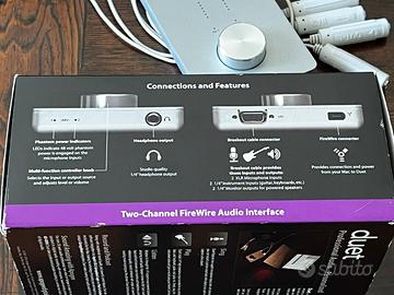 Vecchietta ma perfettamente funzionante, qualita audio 24bit/96Khz 2 ingressi XLR Microfonicl 2 ingressi strumenti (chitarra, tastiera,etc.) 2 uscite preamplificate Eccellente qualitá, nessuna latenza. Made in USA Posso spedire