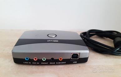 Scheda audio esterna USB 5.1 marca NTrust, perfetta per migliorare l’audio del PC o sostituire una scheda interna difettosa. Facile da collegare, plug & play Supporta audio surround 5.1 Ottima per ascolto, gaming, videochiamate
