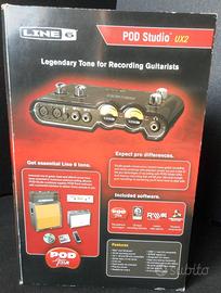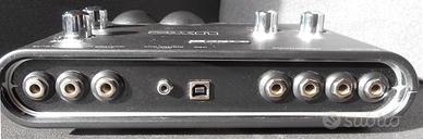 Scheda audio esterna per Pc usb per registrare strumenti musicali e voce con qualità professionale. 2 entrate strumenti, Alimentazione Phantom per 2 microfoni a cardioide. Altre entrate per pedali e altro sul retro. Interfaccia su pc per applicare effetti senza latenza tramite i programmi appositi inclusi. Come nuova, usata poco sempre a casa e trattata con cura.