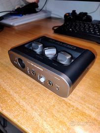 Scheda audio con cui poter registrare una chitarra e voce. Guardare la quarta foto per avere maggiori dettagli del prodotto e software supportati e/o inclusi.