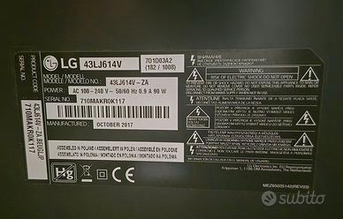 Scheda Madre Eax6712960411.01 Lg 43lj614v. Tcon bar HV430FHB-N4D SCHEDA ALIMENTAZIONE LGP43D-17F1 interruttore accensione e altoparlanti