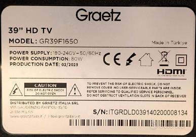 QUESTA PARTE È STATA RIMOSSA DA UN TV GREATZ Model: GR39F1650