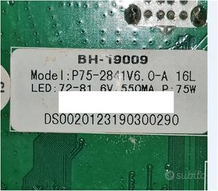 Scheda TV P75-2841V6.0 WiFi, Compatibile con molte marche di TV , la Scheda Madre era montata su tv SMART TECH, si può usare in tutti i tv con specifiche di retroilluminazione 82 V 550 MA BH-19009 O Bh-19096 36-41 V 600 MA(1t1ci 1920 65V 279) Vendo per rottura pannello lcd