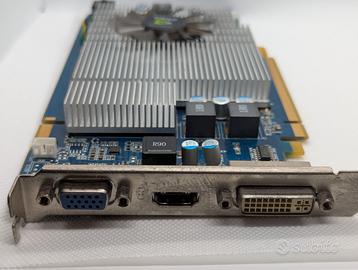 Scheda video NVIDIA GeForce 9600 GS con 768 MB di memoria DDR2, in buone condizioni estetiche e funzionante.