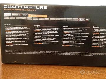 QUAD-CAPTURE fissa un nuovo standard per le interfacce audio USB2 portatili grazie ai due ingressi con preamplificatori VS, alla qualità audio a 24-bit/192kHz, alla bassa latenza e all’alimentazione via USB. E’ solida, compatta ed estremamente portatile risultando ideale per effettuare registrazioni multicanale in ogni luogo.