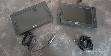 Comodi schermi/lettore dvd per auto perfettamente funzionanti,con tutti i cavi. e telecomando.Funzionano con propria batteria o a necessità con alimentazione da accendi sigari. leggono DVD o, molto comodo ,la possibilità di usare chiavette USB o schede SD. Si possono utilizzare con dei porta tablet da attaccare al poggiatesta oppure con un semplice laccio che si inserisce nelle apposite sedi presenti sul retro. Contattare tramite subito.