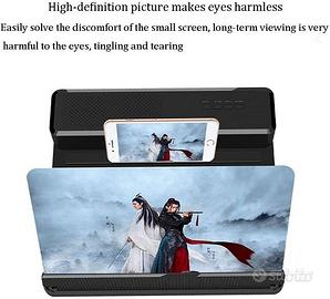 Questo ingranditore video con casse Bluetooth è un supporto per smartphone utile a proteggere gli occhi ed a ingrandire lo schermo dello smartphone. Protegge dalle radiazioni e dai raggi di luce blu, e riduce efficacemente l'affaticamento degli occhi, con notevoli vantaggi per gli anziani ed i bambini. La modalità schermo rimovibile è vantaggiosa in quanto consente anche di proteggere la lente. E' pieghevole, leggero, di dimensioni ridotte, quindi facilmente trasportabile.