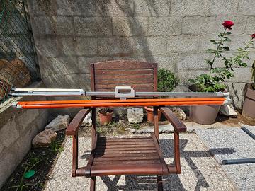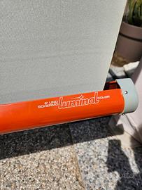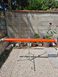 Schermo da proiezione H.cm130 x L.cm130 Luminal con cavalletto e sacca in pelle di protezione. Lo schermo presenta una piccola macchia e un taglio di cm 1 visibili in foto