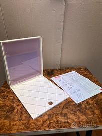 Schermo pieghevole da tavolo per vedere diapositive o film ,si apre in un attimo si posiziona il proiettore e via …e’ anche un bel porta foto . Completo di scatola originale e istruzioni. E’ nuovo mai utilizzato .