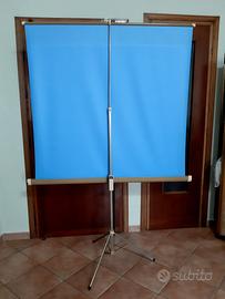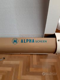 Schermo di proiezione VIDEO/DIAPOSITIVE marca: "ALPHA- SCREEN" ,completamente ripiegabile di comodo trasporto. La superficie di proiezione è bianca perlinata, nella quale,è presente un piccolo difetto (diam. 1cm)di mancata perlinatura.