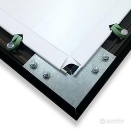 Il profilo del telaio in alluminio appositamente progettato, garantisce l'assenza di riflessi che potrebbero interferire con la proiezione.