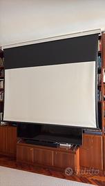 Schermo originale Screenline 1 x 250 x 140 cm formato 16:9 a motore con bordi neri slim (258 cm), telo bordato con retro nero, KIT telecomando esterno, caduta telo anteriore, condizioni perfette. Solo zona Roma con disinstallazione e trasporto a carico dell'acquirente.