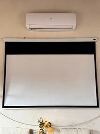 Disponibile solo consegna a mano a Roma/Lazio Nuovo. Mai usato, solo montato a parete una volta per prova, vendo per inutilizzo. Condizioni estetiche e funzionali perfette. Modello 1090102 Funzionamento automatico con telecomando Dimensioni display 200x113 cm - Formato 16:9 Materiale: acciaio, tela 4 K ultra HD Full HD 1080 Potenza: 40 W; Tensione: 230 V; Frequenza: 50 Hz Peso 14 kg Nuovo venduto a €310 Facile da montare: schermo è adatto sia per il montaggio a parete che a soffitto. Home Cinema di alta qualità: installazione elegante, ottima qualità dell'immagine per tutte le situazioni, cinema a casa o presentazioni in ufficio. Qualità immagine: il display ha un fattore di guadagno di 1,2, ottimizzato per proiezioni con proiettori LCD e DLP e consente un ampio angolo di visione. L'angolo di visione di 160° rende lo schermo estremamente flessibile, per vedere sempre un'immagine omogenea e piacevole sullo schermo da ogni parte della stanza. Materiale premium: tela di proiezione frontale tipo D "diffusa" in PVC a base di tessuto laminato bianco opaco, multistrato in fibra di vetro, adatto sia per l'uso professionale che privato. Può essere facilmente pulito, con rivestimento anti-muffa. Qualità: tela dotata di uno schienale nero, assicura che la luce che entra da dietro non possa passare attraverso lo schermo e che l'immagine non venga alterata. Il contrasto è migliorato dai bordi neri. Il sistema di blocco multilivello consente di selezionare diversi formati, in modo che possa essere regolato in base al contenuto. Lo schermo viene consegnato completamente pronto per l'uso, compresa la scatola di controllo a parete, un telecomando a infrarossi (con batterie), il materiale di montaggio per parete e un breve manuale.