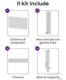 Vendo per errata misura schermo proiettore Ultimea Photon 120 con cavalletto e picchetti. Usato solo 10 giorni.