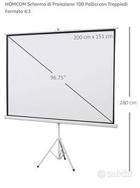 Vendo schermo di proiezione HOMCOM da 100 pollici, formato 4:3, con treppiedi regolabile. Perfetto per film, presentazioni, gaming o proiezioni aziendali.