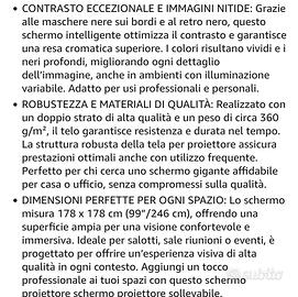Schermo da proiezione nuovo, mai usato. Marca TekTake come da specifiche Amazon allegate. Vendo per doppio acquisto non restituibile su Amazon. Solo consegna a mano a Firenze.