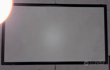 Schermo dal costo originario superiore a 3000 euro. La cornice Stewart e i piedistalli a T regolabili in altezza sono di alta qualità come il telo tensionato con guadagno 1.3. Possibile consegna montato a mie mani lombardia - piemonte -liguria -emilia romagna -veneto da concordare