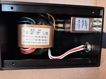 Made in usa Versione EU a 220 volt ( comprato negozio italia ) Pre phono giradischi INCLUSA NELLA VENDITA il Power Supply PSU con Toroidale, box alluminio spesso e filtro Shaffner, uno dei migliori filtri in commercio usato anche in sistemi medicali , solo il psu da 16V e 3/4 amper lo pagai 180 euro Si tratta di uno dei migliori prodotti nella sua fascia di prezzo per versatilità e qualità sonora. È in grado di gestire praticamente qualsiasi testina grazie ai selettori di guadagno (Gain) e carico posti sul fondo. Caratteristiche principali: •Compatibilità Totale: Supporta testine MM (Moving Magnet), Decca, e MC (Moving Coil) ad alta o bassa uscita. •Guadagno Regolabile: 4 livelli di gain selezionabili (30, 42, 47, e 59 dB). •Qualità Schiit: Progettato e costruito negli USA con componenti di alta qualità e stadio di uscita passivo RIAA. •Suono: Estremamente silenzioso, dettagliato e dinamico. Condizioni dell'oggetto: •Stato estetico: Perfetto, senza graffi o segni di usura. •Stato funzionale: 100% funzionante, testato regolarmente. •Accessori inclusi: Alimentatore originale e imballaggio originale + PSU Shaffner Paragonabile a black cube, Lebel , prima luna, graham Accuphase, Macintosh Possibile consegna a mano zona Lecce brindisi taranto