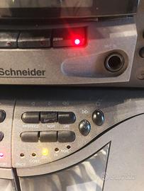 IMPIANTO HI-FI SCHNEIDER DEL TIPO MIDI, COMPLETO DI SINTONIZZATORE, AMPLIFICATORE, LETTORE CD E CASSE E TELECOMANDO.
