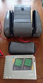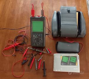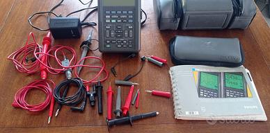 Il multimetro permette la misura in tensione continua ed alternata e ohmmetro. Dotato di due sonde per l'oscilloscopio + puntali e cavetteria varia per le misure col multimetro. E' presente il suo alimentatore originale + custodia per lo strumento. E' presente anche il manuale Philips Fluke 97 in italiano. Non e' presente la batteria ricaricabile in quanto non piu' funzionante ma facilmente reperibile sul mercato per un funzionamento non collegato alla rete elettrica.