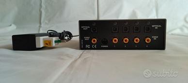 Selettore di ingressi digitali, sia ottici che coassiali. Seleziona in automatico l'ingresso corretto al rilevamento del segnale. Attenzione: solo 16/44,1. Non funziona a dovere con risoluzioni e frequenze diverse.